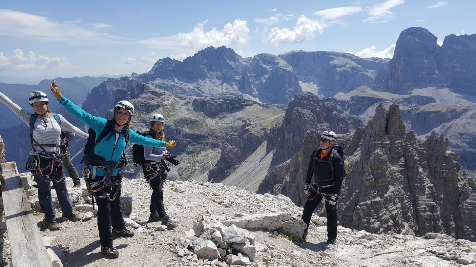 VIAS FERRATAS DE LOS DOLOMITAS.- Italia. Sin duda la cuna de las Vías Ferratas. Por la estructura de su roca, con repisas y “fajas” entre paredes, se equiparon muchos itinerarios con fines militares y defensivos que más adelante se reequiparon para uso deportivo y montañero, con Guía de Montaña de AA .
