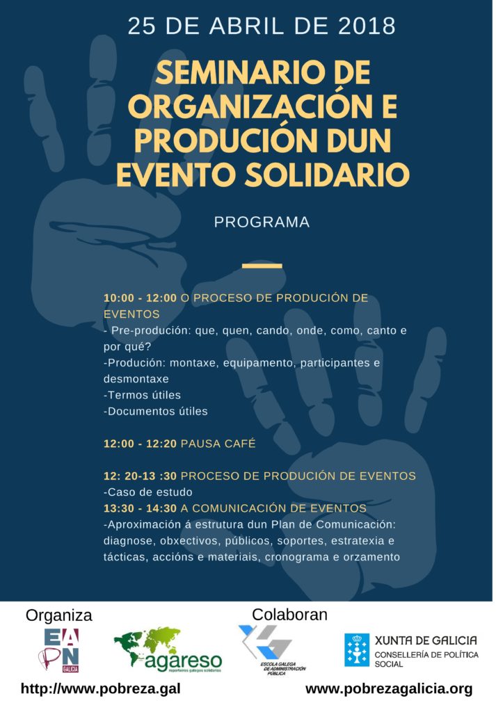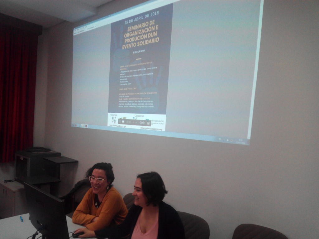 Onte tivo lugar o Seminario de Organización e Creación dun evento Solidario. Organizado polo grupo de Comunicación de EAPN Galicia, foi impartido por Lorena Seijo e Sonia Díaz da Asociación Galega de Reporteiros Solidarios (AGARESO) na Escola Galega de Administración Pública (EGAP).